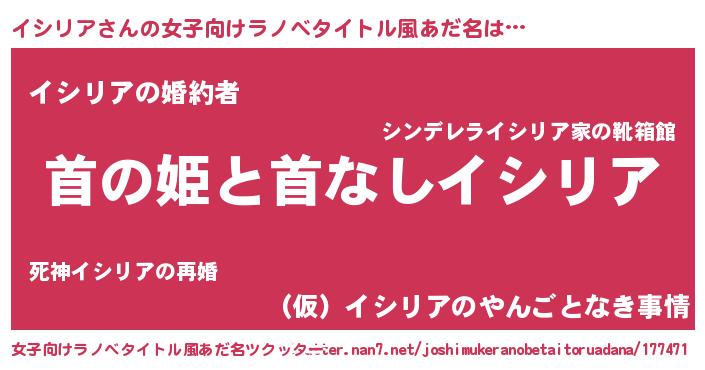 | 男性向けラノベタイトル風あだ名 | 『はたらくイシリアさま!』 |