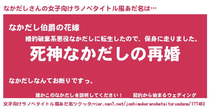 | 男性向けラノベタイトル風あだ名 | 『ノーゲーム・ノーナカダシ』 |