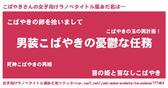 | 男性向けラノベタイトル風あだ名 | 『冴えないこばやきの育てかた』 |