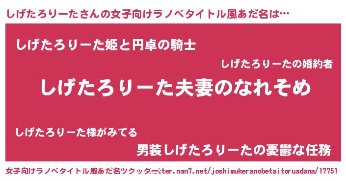 | 男性向けラノベタイトル風あだ名 | 『おまえをオタクにしてやるから、俺をしげたろりーたにしてくれ! 』 |