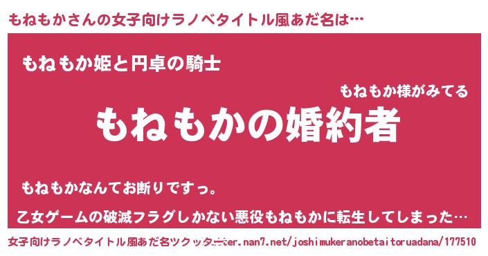 | 胡散臭い通販商品みたいなあだ名 | 『運命の人と巡り会える高級そうな絵画…その名も「もねもか」』 |