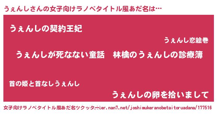 | ヘコむあだ名 | 『うぇんし(爆)』『うぇっ子』『豆乳』 |