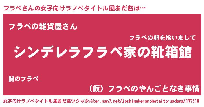 | 意味不明あだ名 | 『フラペフォーエバー』『ペロリンフラペ』 |