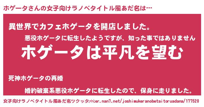 | ヘコむあだ名 | 『ホゲを』『ホゲータ(遠い目)』 |
