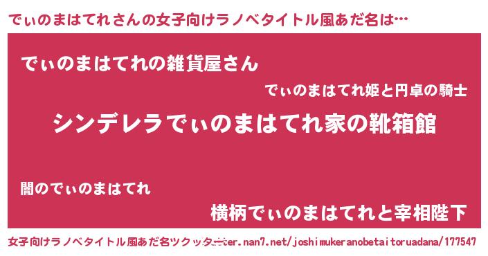 | 意味不明あだ名 | 『でぃのまはてれフォーエバー』 |