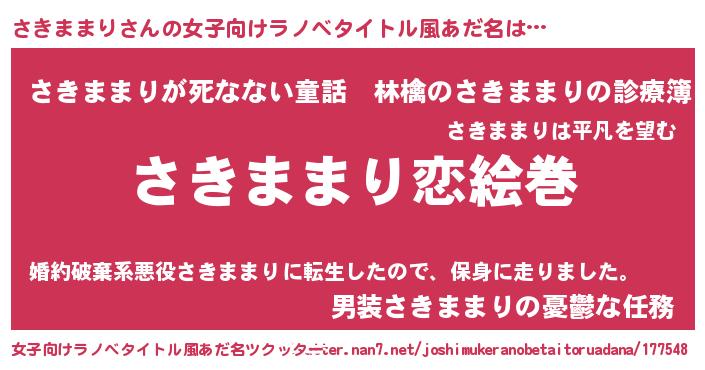 | 男性向けラノベタイトル風あだ名 | 『ノーゲーム・ノーサキママリ』 |