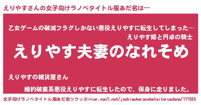 | ヒーロー風カッコイイあだ名 | 『正義の使者えりやす』『仮面エリダー』 |