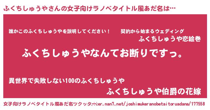 | 意味不明あだ名 | 『自称ふくちしゅうや』 |