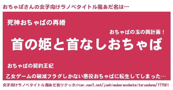| 男性向けラノベタイトル風あだ名 | 『はたらくおちゃばさま!』 |