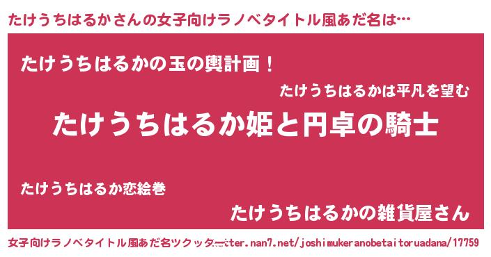 | 男性向けラノベタイトル風あだ名 | 『たけうちはるかの憂鬱』 |