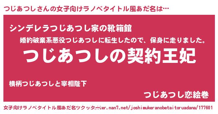 | 男性向けラノベタイトル風あだ名 | 『誰もが恐れるあのつじあつしが、ぼくの専属メイドになるようです。』 |