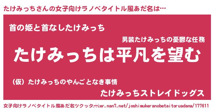 | 男性向けラノベタイトル風あだ名 | 『ダンジョンにたけみっちを求めるのは間違っているだろうか』 |