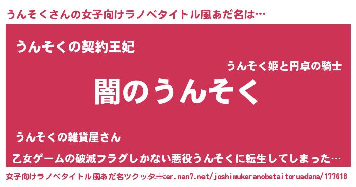 | 男性向けラノベタイトル風あだ名 | 『Re:うんそくから始める異世界生活』 |