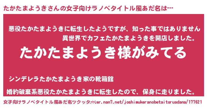 | 男性向けラノベタイトル風あだ名 | 『たかたまようきの嫁は女の子じゃないと思った?』 |
