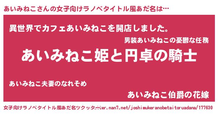 | 胡散臭い通販商品みたいなあだ名 | 『モテモテ間違いなしブレスレット…その名も「あいみねこ」』 |