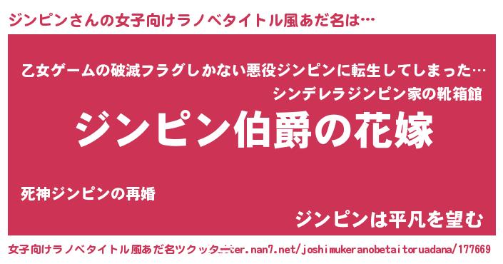 | 意味不明あだ名 | 『ジンピンフォーエバー』『自称ジンピン』 |