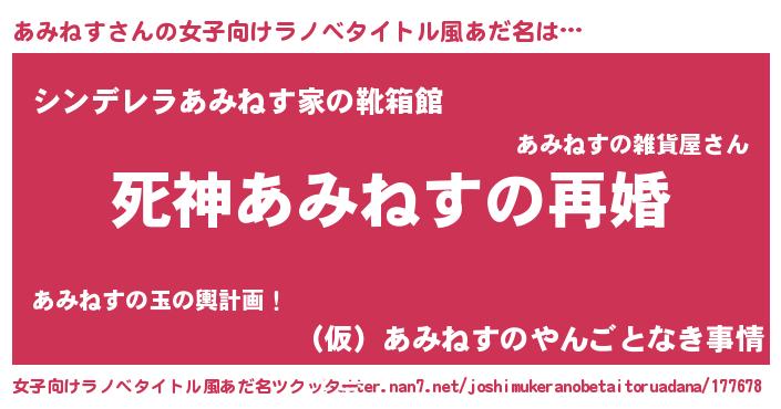 | ヘコむあだ名 | 『あみにゅー』『豆乳』『あみを』 |
