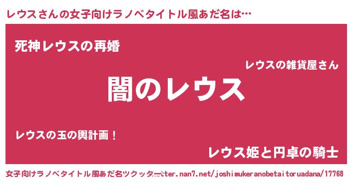 | 男性向けラノベタイトル風あだ名 | 『Re:レウスから始める異世界生活』 |