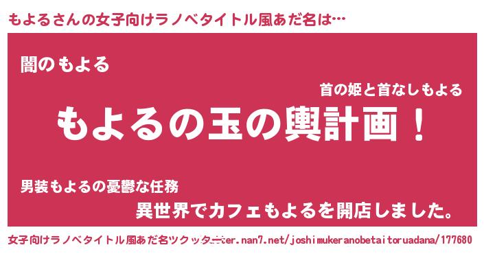 | 意味不明あだ名 | 『ニラ科もよる属』『自称もよる』 |