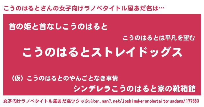 | 男性向けラノベタイトル風あだ名 | 『Re:こうのはるとから始める異世界生活』 |