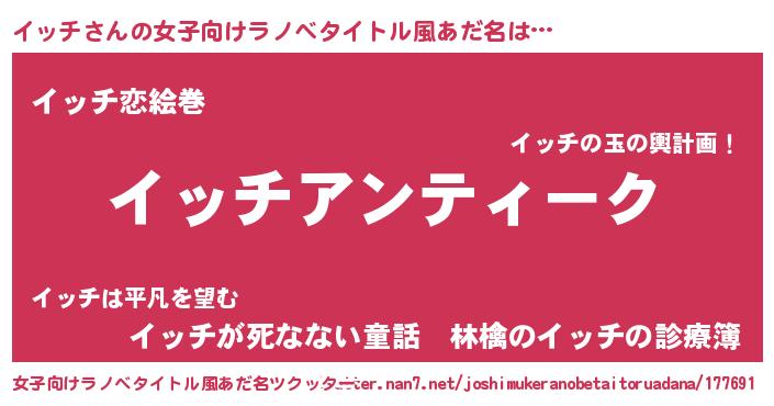 | 意味不明あだ名 | 『自称イッチ』『眠気覚ましガムイッチ味』 |