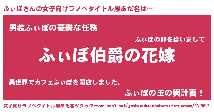 | 胡散臭い通販商品みたいなあだ名 | 『世界が平和になる高級そうな絵画…その名も「ふぃぼ」』 |
