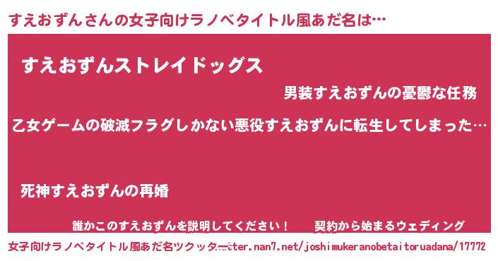 | 男性向けラノベタイトル風あだ名 | 『この素晴らしい世界にすえおずんを!』 |