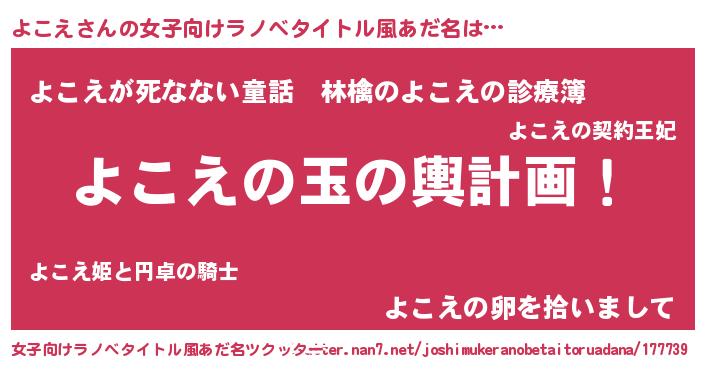 | ピコ太郎風あだ名 | 『ヨコ五郎』『ピコヨ郎』『ヨコ六郎』 |