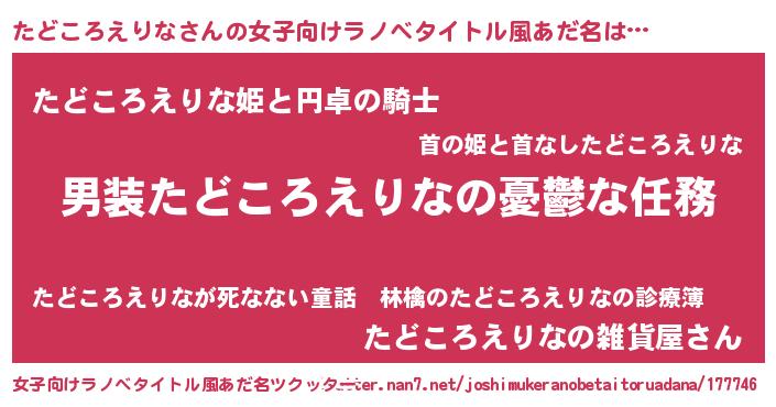 | 男性向けラノベタイトル風あだ名 | 『冴えないたどころえりなの育てかた』 |
