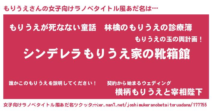 | 男性向けラノベタイトル風あだ名 | 『緋弾のモリウエ』『魔弾の王ともりうえ』 |