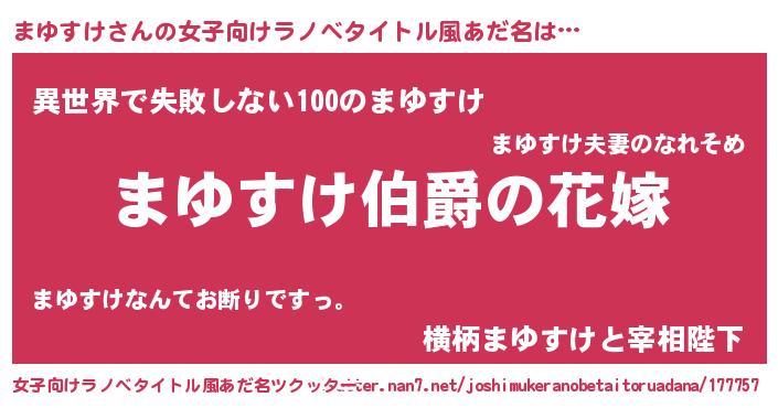 | 男性向けラノベタイトル風あだ名 | 『やはりまゆすけの青春ラブコメはまちがっている 』 |