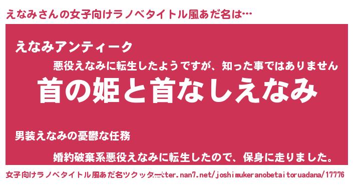 | 男性向けラノベタイトル風あだ名 | 『はたらくえなみさま!』 |