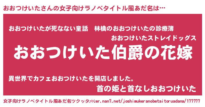 | 欧米人風あだ名 | 『おおつけいたクリステル』 |