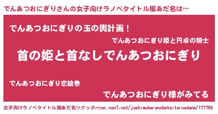 | ヒーロー風カッコイイあだ名 | 『魔戒騎士デン』『ネオデンアツオニギリ』 |