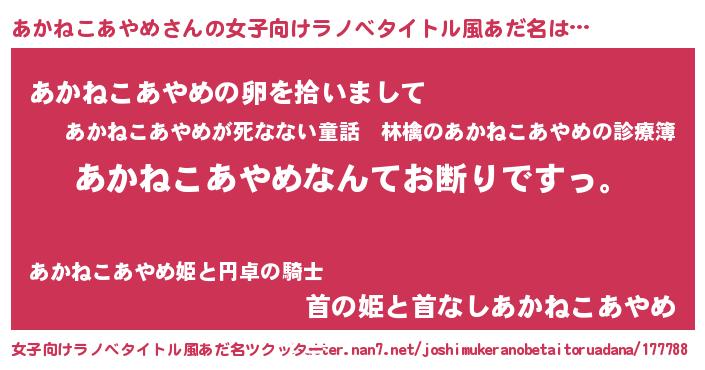 | 意味不明あだ名 | 『自称あかねこあやめ』 |