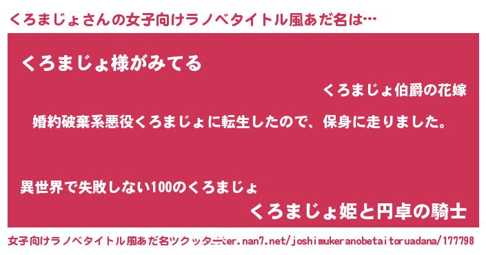 | 胡散臭い通販商品みたいなあだ名 | 『信頼と実績のネックレス…その名も「くろまじょ」』 |