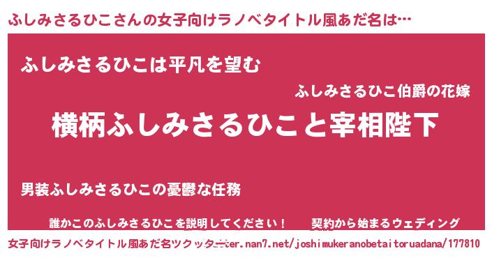| 意味不明あだ名 | 『とにかく怪しいふしみさるひこ』 |