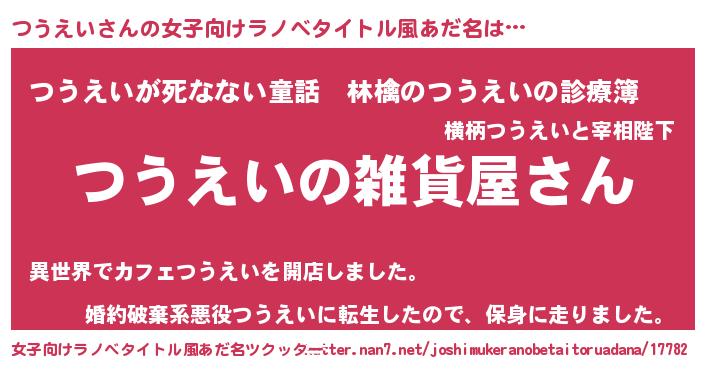 | 意味不明あだ名 | 『つうえいフォーエバー』『自称つうえい』 |
