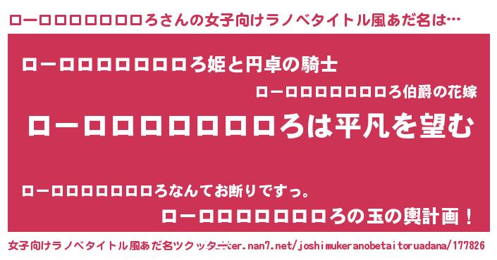 | 胡散臭い通販商品みたいなあだ名 | 『信頼と実績のサプリメント…その名も「ローロロロロロロロろ」』 |