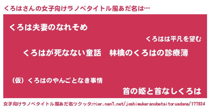 | 意味不明あだ名 | 『住所不定無職くろは(89歳)』 |