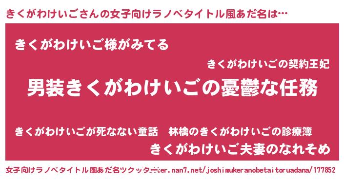 | 男性向けラノベタイトル風あだ名 | 『冴えないきくがわけいごの育てかた』 |