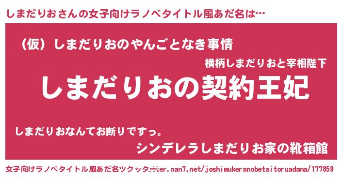 | 胡散臭い通販商品みたいなあだ名 | 『来世でも幸せになれる水素水…その名も「しまだりお」』 |