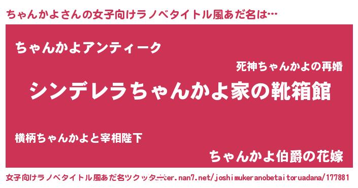 | 意味不明あだ名 | 『自称ちゃんかよ』『永久保存ちゃんかよ』 |