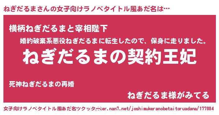 | 胡散臭い通販商品みたいなあだ名 | 『来世でも幸せになれる健康食品…その名も「ねぎだるま」』 |