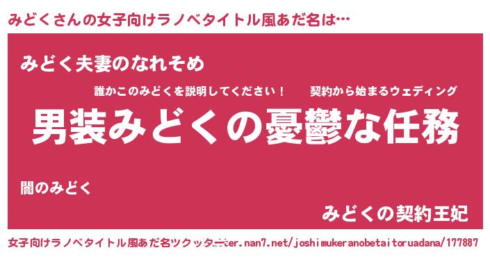 | 男性向けラノベタイトル風あだ名 | 『冴えないみどくの育てかた』 |