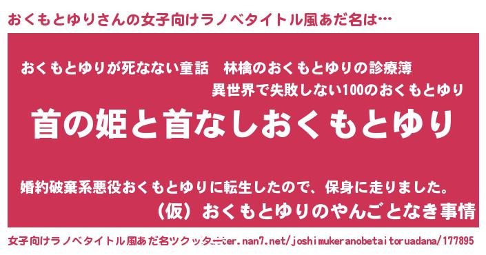 | ヘコむあだ名 | 『おくにゅー』『おくもとゆり(小並感)』 |