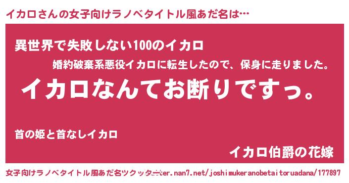 | 意味不明あだ名 | 『自称イカロ』『永久保存イカロ』 |