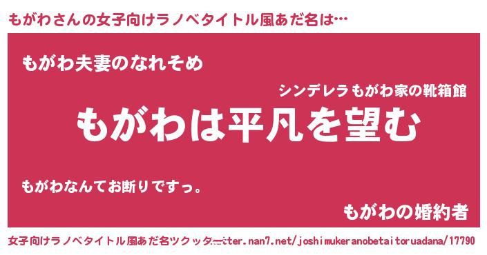 | 胡散臭い通販商品みたいなあだ名 | 『信頼と実績のサプリメント…その名も「もがわ」』 |