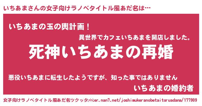 | 男性向けラノベタイトル風あだ名 | 『ノーゲーム・ノーイチアマ』 |