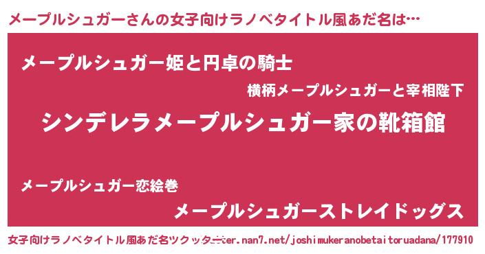 | 胡散臭い通販商品みたいなあだ名 | 『必ず成功する霊験あらたかなお札…その名も「メープルシュガー」』 |